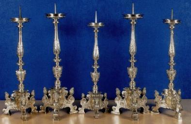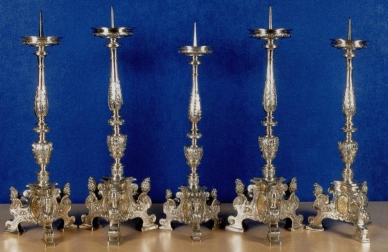 Keywords: Candlesticks of Constance of Austria.jpg Candlesticks of Constance of Austria Świeczniki Konstancji Austriaczki ca 1624-1625 Silver gilt cm 70 5 66 63 Church of St James Nysa accession number object history < 1624 commission Constance of Austria Warsaw < 1655 gift Church of St James in Nysa Charles Ferdinand Vasa credit line Initially a set of 6 altar candlesticks Base adorned with cartouches with emblems of Poland Lithuania Sweden Gothland and the Habsburgs arms of Queen Constance of Austria cherubs winged heads and friuts own BurgererSF Copyright expired PD-Art Saints James and Agnes Basilica in Nysa Goldsmithery from the Polish Vasa Collection Church candlesticks Johannes Lencker |