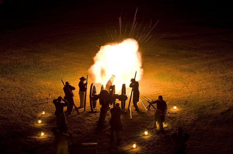 Keywords: Cannon fire illuminates Fort Pulaski National Monument Georgia