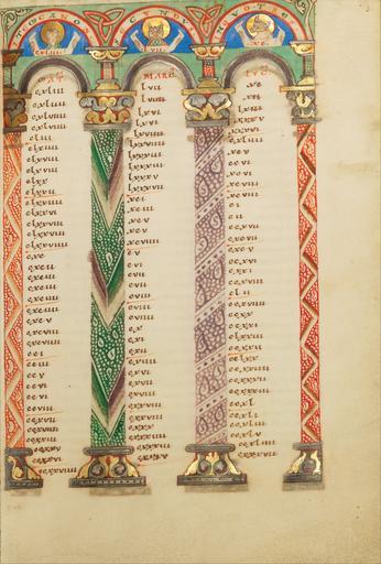 Keywords: Canon Table Page - Google Art Project (6850296).jpg None 430703 Unknown /collection/the-j-paul-getty-museum/artwork/canon-table-page-unknown/6850296/ Unknown illuminator /collection/the-j-paul-getty-museum/ The J Paul Getty Museum 343005 http //www getty edu/museum 3/12/2012 5 14 40 PM /collection/the-j-paul-getty-museum/artwork/canon-table-page-unknown/6850296/ 1120 about 1120 - 1140 Saint Luke Saint Mark Saint Matthew Tempera colors gold and silver on parchment 229 6850296 True 1140 3/25/2012 2 00 39 PM lido getty edu-gm-obj110037 http //www getty edu/art/gettyguide/artObjectDetails artobj 110037 http //www getty edu/legal/copyright html Folio 1120 1150 Helmarshausen Germany Creation w165 x h229 cm about 1120 - 1140 False 0 67578125 Part canon-table-page-unknown Canon Table Page c 165 Tempera colors gold and silver on parchment Saint Luke Saint Mark Saint Matthew http //www getty edu/legal/copyright html special url_id uAFIPV1TESrg1Q PD-old-100 MS LUDWIG II 3 Getty museum - Gospel book from Helmarshausen Canon tables Google Art Project works by unknown artist