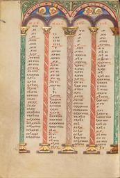 Keywords: Canon Table Page - Google Art Project (6807946).jpg None 430703 Unknown /collection/the-j-paul-getty-museum/artwork/canon-table-page-unknown/6807946/ Unknown illuminator /collection/the-j-paul-getty-museum/ The J Paul Getty Museum 343005 http //www getty edu/museum 3/12/2012 5 14 15 PM /collection/the-j-paul-getty-museum/artwork/canon-table-page-unknown/6807946/ 1120 about 1120 - 1140 Saint Luke Saint Mark Saint John the Evangelist Saint Matthew Tempera colors gold and silver on parchment 229 6807946 True 1140 3/25/2012 9 33 38 AM lido getty edu-gm-obj110034 http //www getty edu/art/gettyguide/artObjectDetails artobj 110034 http //www getty edu/legal/copyright html Folio 1120 1150 Helmarshausen Germany Creation w165 x h229 cm about 1120 - 1140 False 0 67578125 Part canon-table-page-unknown Canon Table Page c 165 Tempera colors gold and silver on parchment Saint Luke Saint Mark Saint John the Evangelist Saint Matthew http //www getty edu/legal/copyright html special url_id ZQFVORINRdP0Yg PD-old-100 MS LUDWIG II 3 Getty museum - Gospel book from Helmarshausen Canon tables Google Art Project works by unknown artist |