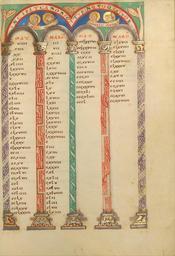 Keywords: Canon Table Page - Google Art Project (6846398).jpg None 430703 Unknown /collection/the-j-paul-getty-museum/artwork/canon-table-page-unknown/6846398/ Unknown illuminator /collection/the-j-paul-getty-museum/ The J Paul Getty Museum 343005 http //www getty edu/museum 3/12/2012 5 15 13 PM /collection/the-j-paul-getty-museum/artwork/canon-table-page-unknown/6846398/ 1120 about 1120 - 1140 Saint Luke Saint Mark Saint John the Evangelist Saint Matthew Tempera colors gold and silver on parchment 229 6846398 True 1140 3/25/2012 1 48 34 PM lido getty edu-gm-obj110043 http //www getty edu/art/gettyguide/artObjectDetails artobj 110043 http //www getty edu/legal/copyright html Folio 1120 1150 Helmarshausen Germany Creation w165 x h229 cm about 1120 - 1140 False 0 68359375 Part canon-table-page-unknown Canon Table Page c 165 Tempera colors gold and silver on parchment Saint Luke Saint Mark Saint John the Evangelist Saint Matthew http //www getty edu/legal/copyright html special url_id dQEFwN4b8OTvZA PD-old-100 MS LUDWIG II 3 Getty museum - Gospel book from Helmarshausen Canon tables Google Art Project works by unknown artist