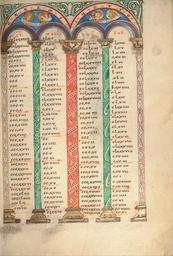 Keywords: Canon Table Page - Google Art Project (6848278).jpg None 430703 Unknown /collection/the-j-paul-getty-museum/artwork/canon-table-page-unknown/6848278/ Unknown illuminator /collection/the-j-paul-getty-museum/ The J Paul Getty Museum 343005 http //www getty edu/museum 3/12/2012 5 14 22 PM /collection/the-j-paul-getty-museum/artwork/canon-table-page-unknown/6848278/ 1120 about 1120 - 1140 Saint Luke Saint Mark Saint John the Evangelist Saint Matthew Tempera colors gold and silver on parchment 229 6848278 True 1140 3/25/2012 1 50 44 PM lido getty edu-gm-obj110035 http //www getty edu/art/gettyguide/artObjectDetails artobj 110035 http //www getty edu/legal/copyright html Folio 1120 1150 Helmarshausen Germany Creation w165 x h229 cm about 1120 - 1140 False 0 67578125 Part canon-table-page-unknown Canon Table Page c 165 Tempera colors gold and silver on parchment Saint Luke Saint Mark Saint John the Evangelist Saint Matthew http //www getty edu/legal/copyright html special url_id WAH-T4iqIBSWNw PD-old-100 MS LUDWIG II 3 Getty museum - Gospel book from Helmarshausen Canon tables Google Art Project works by unknown artist