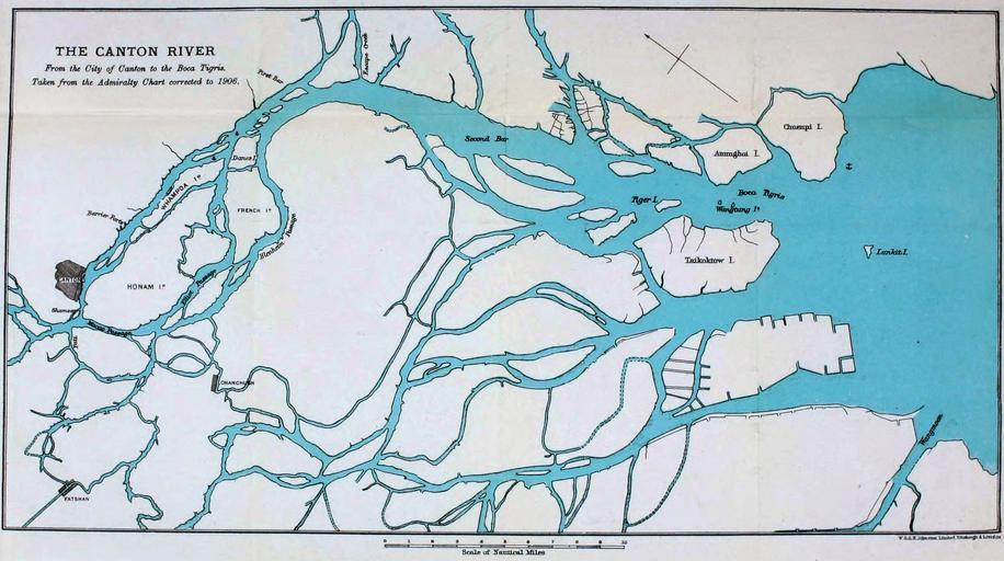 Keywords: Canton to Bocca Tigris.jpg Map of the city of Canton to the Bocca Tigris Published 1910 Hosea Ballou Morse 1910 http //www archive org/stream/internationalrel01mors page/n199 The International Relations of the Chinese Empire Volume 1 p 144 From the Admiralty Chart PD-old PD-Art-100 Bocca Tigris Old maps of Guangdong Pearl River in Guangzhou |