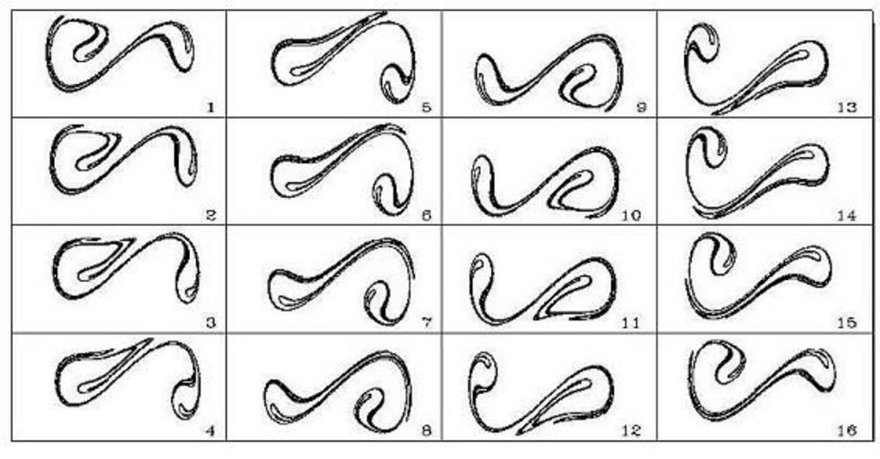 Keywords: CaosDI10.JPG Secciones estroboscópicas del atractor de Duffing mirando con atención el gráfico se ve claramente la transformación del panadero Esto es se aprecia cómo a la vez que se estira se pliega sobre sí mismo 2005-09-13 own assumed Yrithinnd Attractors |