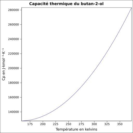 | Keywords: Capacité thermique butan-2-ol.svg fr Capacité thermique liquide calculée d'après <br/> Robert H Perry et Donald W Green Perry's Chemical Engineers' Handbook McGraw-Hill USA 1997 7e éd 2400 p ISBN 0-07-049841-5 p 2-170 own Epop 2010-06-28 Created with Gnumeric Heat capacity |