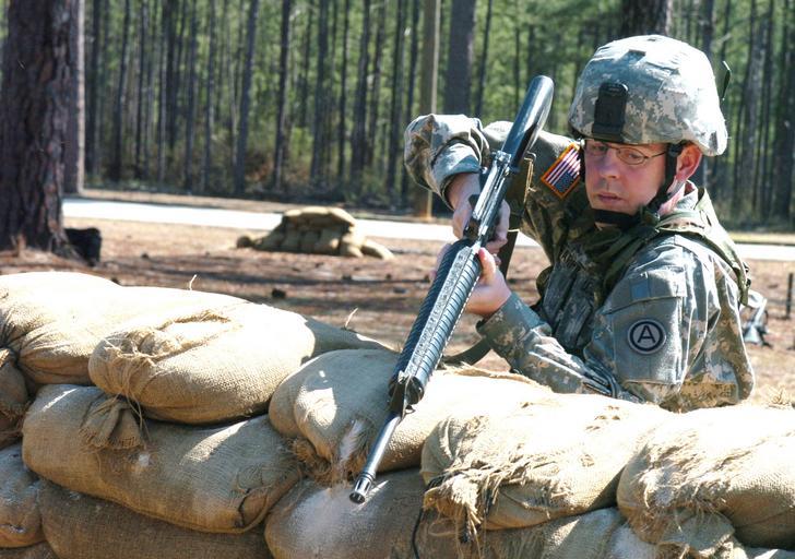 | Keywords: Capt Harper Checks Over a Sandbag Wall for Any Enemy Forces DVIDS15480.jpg en Capt John Harper checks over a sandbag wall for any enemy forces or an improvised explosive device during a training exercise at Fort Benning's CONUS Replacement Center Feb 17 Harper is one of over 30 Soldiers activated as part as Detachment 13th Photo by U S Army Sgt Alex Licea Third U S Army Public Affairs Office 2006-02-17 https //www dvidshub net/image/15480 15480 2006-02-21 17 07 FORT BENNING GA US PD-USGov Fort Benning Images from DoD uploaded by Fæ |