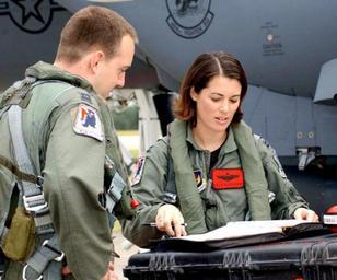 Keywords: Capt. Nicole Malachowski, F-15E female pilot, looks over checklists before flying a sortie 1763646018.jpg en Capt Nicole Malachowski and Capt Darin Tate look over checklists before flying a sortie at RAF Lakenheath England last month Both are pilots for the 494th Fighter Squadron Capt Malachowski has been selected to fly for the U S Air Force Air Demonstration Squadron Thunderbirds 2006 season making history as the first female demonstration pilot in the 52-year history of the team 2005-07-06 http //www stripes com/news/newest-thunderbird-pilot-shows-up-those-who-said-girls-can-t-do-that-1 35474 KRISTI MULDER / COURTESY OF U S AIR FORCE other versions 494th Fighter Squadron 48th Fighter Wing Royal Air Force Lakenheath United Kingdom PD-USGov Women in the United States Air Force Fighter pilots Fighter aircraft F-15E Strike Eagle Flight suits FlightGear G-suits Harnesses Life jackets Uploaded with UploadWizard |