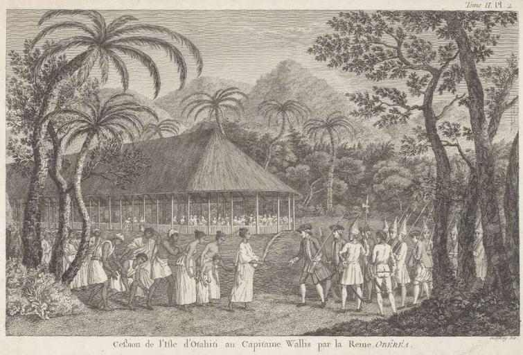 Keywords: Captain Samuel Wallis of HMS Dolphin being received by the Queen of Otaheite, July 1767.jpg Plate mark 23 8 x 33 cm Digital Versions http //nla gov au/nla pic-an7831507 jpeg file http //southseas nla gov au/biogs/gallery/P000407g htm 1773 Engraved by J Hall for inclusion as plate xxii within John Hawkesworth's Voyages in the Southern Hemisphere ¦ <gallery>File Queen Oberea welcoming Captain Wallis Tahiti Le Costume Ancien et Moderne by Giulio Ferrario 1827 jpg File Captain Wallis and Queen Oberea at Tahiti jpg</gallery> PD-old-100 Samuel Wallis People of Tahiti History of Tahiti Royalty of Tahiti Giulio Ferrario |