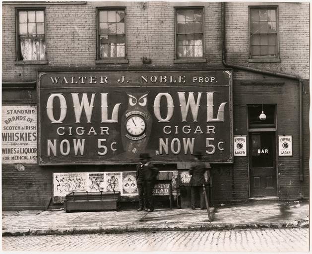 Keywords: capturing city st. st louis st. louis street scenes stlouisstreetscenes stl streets photography black white history missouri history museum missourihistorymuseum text sign writing street sign outdoor monochrome Walter J. Noble Saloon featuring an Owl Brand Cigar billboard. 2 North Eighteenth Street or 2300 Chestnut Street. Photograph, ca. 1909. Walter J. Noble Saloon featuring an Owl Brand Cigar billboard. 2 North Eighteenth Street or 2300 Chestnut Street. Photograph, ca. 1909. |