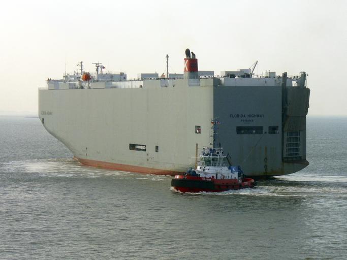 | Keywords: Car carrier Florida Highway.jpg en The car carrier Florida Highway has just left the Nordschleuse ship lock in Bremerhaven and is now heading to the North Sea Tugboat RT Peter is at the stern de Das Autotransportschiff Florida Highway hat gerade die Nordschleuse in Bremerhaven verlassen und dreht jetzt Richtung Nordsee Am Heck des Schiffes ist der Schlepper RT Peter own Tvabutzku1234 2012-09-04 53 33 39 57 N 8 33 8 87 E region DE_heading W Car carriers in Bremerhaven Florida Highway ship 2008 RT Peter tugboat 2009 Cc-zero |