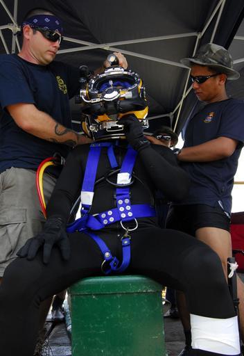 | Keywords: CARAT 2013 130618-N-LX503-131.jpg en Navy Diver 2nd Class Andrew Gose left alongside a member of the Royal Malaysian Navy RMN fastens the helmet of a RMN diver during a dive and salvage training exercise in support of Cooperation Afloat Readiness and Training CARAT Malaysia 2013 More than 1 200 Sailors and Marines are participating in CARAT Malaysia 2013 U S Navy ships participating in CARAT Malaysia include the amphibious dock landing ship USS Tortuga LSD 46 with embarked U S Marine Corps landing force the diving and salvage vessel USNS Safeguard T-ARS 50 with embarked Mobile Diving and Salvage Unit MDSU 1 the guided missile destroyer USS Curtis Wilbur DDG 54 and the littoral combat ship Freedom LCS 1 CARAT is a series of bilateral military exercises between the U S Navy and the armed forces of Bangladesh Brunei Cambodia Indonesia Malaysia the Philippines Singapore Thailand and Timor Leste U S Navy photo by Mass Communications Specialist 1st Class Joy M Kirch-Kelling RELEASED 2013-06-18 Petty Officer 1st Class Joy Kirch-Kelling https //www dvidshub net/image/1683542 130618-N-LX503-131 2014-12-02 20 10 KUANTAN TANJONG GELANG MY PD-USGov-Military-Navy USS Curtis Wilbur DDG-54 USS Tortuga LSD-46 Cooperation Afloat Readiness and Training 2013 USNS Safeguard T-ARS-50 Images from DoD uploaded by Fæ |