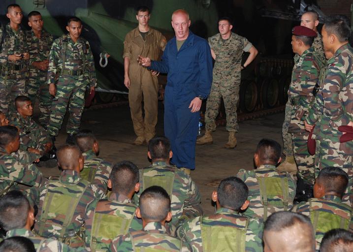 Keywords: CARAT Malaysia 2009 (090623-N-5207L-045).jpg en SOUTH CHINA SEA June 23 2009 Cpl Andrew Walker of the 24th Marine Regiment explains the operation of the Amphibious Assault Vehicle AAV to soldiers from the 9th Royal Malay Regiment in the well deck of the dock landing ship USS Harpers Ferry LSD 49 Malaysian service members toured Harpers Ferry during the first day of Cooperation Afloat Readiness and Training CARAT 2009 CARAT is a series of bilateral exercises held annually in Southeast Asia to strengthen relationships and enhance the operational readiness of the participating forces U S Navy photo by Mass Communication Specialist 1st Class Bill Larned/Released Commander U S 7th Fleet http //www c7f navy mil/imagery/galleries/monthly/2009/06-june/slides/090623-N-5207L-045 htm http //www c7f navy mil/imagery/high-res/2009/06-June/090623-N-5207L-045 jpg Mass Communication Specialist 1st Class Bill Larned 2009-06-23 14 29 PD-USGov-Military-Navy Royal Malay Regiment 10 Para Brigade Malaysia Cooperation Afloat Readiness and Training 2009 Aboard USS Harpers Ferry LSD-49 Amphibious Assault Vehicle 24th Marine Regiment United States |