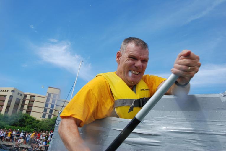 MAKE A MEME View Large Image Cardboard Box Boat Regatta DVIDS94257.jpg en U S Naval Station Guantanamo Bay's Command Master Chief Keith Carlson paddles during the Great Cardboard Boat Regatta 2008 May 31 2008 The regatta is an annual event where competitors from the ...