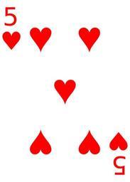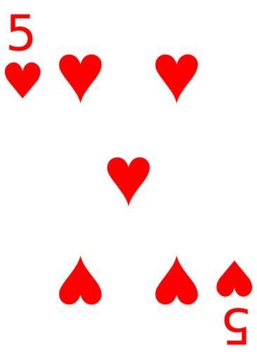 Keywords: Cards-5-Heart.svg Part of a set of SVG Playing Cards Own 2008-05-05 me Public Domain GW Simulations en 5 of Hearts SVG playing cards 1 Individual playing cards SVG playing cards ™¥