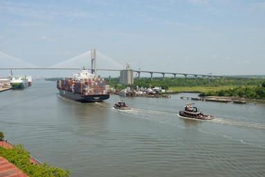 Keywords: cargo ship freighter savannah georgia river ship cargo transportation industry sea freight industrial shipping export water transport vessel harbor container boat port trade business import dock loading international shipyard bulk ocean unloading carrier nautical sky goods delivery pier