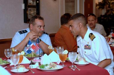 Keywords: Caribbean Phase of Continuing Promise 2008 DVIDS122469.jpg en U S Public Health Service Capt Jose Belardo has a conversation with a military official from the Dominican Republic at a distinguished visitors reception aboard the amphibious assault ship USS Kearsarge Kearsarge is the primary platform for the Caribbean phase of the Continuing Promise 2008 humanitarian assistance mission an equal-partnership mission involving the United States Canada the Netherlands Brazil France Nicaragua Colombia Dominican Republic Trinidad and Tobago and Guyana 2008-10-15 https //www dvidshub net/image/122469 081013-N-+++++-081 2008-10-15 18 19 CARIBBEAN SEA AT SEA PD-USGov-Military-Navy USS Kearsarge LHD-3 Images from DoD uploaded by Fæ |