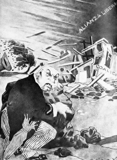 Keywords: Caricatura Juan Luis Sanfuentes 2.jpg es Capeando el Temporal Don Juan Luis -¡Demonios Otra vez vuelven a soplar los vientos liberales Leopoldo Castedo Historia de Chile tomo IV Max 1918-03-23 PD-Chile 1918 cartoons Juan Luis Sanfuentes Caricatures of politicians of Chile |