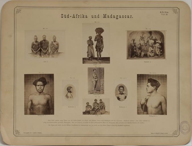 Keywords: Carl Dammann - Photography Album on Anthropology- Ethnology by C. Dammann made in Hamburg (1873-1874) - Google Art Project.jpg commons date commons medium commons dimensions commons institution commons location commons references commons object_history commons exhibition_history commons credit_line commons inscriptions commons notes commons accession_number commons source commons permission commons other_versions commons zoom core title Photography Album on Anthropology- Ethnology by C Dammann made in Hamburg 1873-1874 core creator Carl Dammann core date dateCreated 1873/1876 core format w62 2 x h47 3 cm Complete core type Photograph core rights http //mnantropologia mcu es/ core relation http //ceres mcu es/pages/Main idt 22273 inventary FD4309 table FDOC museum MNA core format medium Albumen paper cardboard art artist_date 1819/1874 art artist_nationality German art artist_birth_place Hamburg c-053bddb4 customtext subject Photography / Anthropology c-053bddb4 customtext cultural_context Contemporary Era c-053bddb4 customtext notas_sobre_el_objeto El álbum Antropologisch-Ethnologisches Albums in Photographien von C Dammann in Hamburg 1873-1874 Album de fotografías sobre Antropología-Etnología de C Dammann realizado en Hamburgo está formado por una carpeta de gran formato que contiene 50 láminas con 642 fotografías Las fotografías de diferentes tamaños y en papel albúmina se agrupan en diferentes composiciones Las láminas contienen desde 5 a 18 fotografías variando siempre el formato Cada una de las láminas contiene un pequeño comentario descriptivo y en su caso el autor o la procedencia de la fotografía Individualmente cada imagen lleva un pie de foto donde generalmente se indica el sexo edad y nombre del personaje retratado La mayoría son retratos o composiciones de estudio ofreciendo imágenes estereotipadas Este álbum responde al interés por la fotografía que comienza a despertar en el último tercio del s XIX como único medio para satisfacer la curiosidad creciente por otros grupos y culturas En el ámbito científico la fotografía supone la posibilidad de acceder al conocimiento de otros grupos del mundo ya que permitía su estudio a todos aquellos que no tenían acceso a esos lugares La importancia de esta técnica hace que se empiecen a editar manuales con normas e instrucciones acerca de cómo se deben tomar las imágenes sobre todo en función de los estudios antropológicos pues el objetivo era facilitar el trabajo de los posibles estudiosos de otros grupos que en ese momento no eran los propios antropólogos sino comerciantes viajeros misioneros etc La inquietud por recopilar el mayor número de imágenes conlleva la edición de los denominados álbumes etnográficos que hacen referencia a un país o a un viaje Ejemplo de ello es este álbum encargado a Carl Dammann por la Berliner Gesellschaft für Anthropologie Ethnologie und Urgeschichte Sociedad de Antropología Etnología y Prehistoria de Berlin en un intento de difundir este tipo de imágenes en Alemania El autor se dedicó a recoger fotografías realizadas por otros autores y agruparlas en un álbum que se editó bajo el nombre de Anthropologisch-Ethnologisches Albums in Photographien von Carl Dammann in Hamburg 1873-1874 El éxito de este álbum uno de los primeros y más completo de este tipo de los que se tiene noticia llevó a su autor a ganar una medalla de bronce en la Exposición Internacional de Viena de 1873 Este dato se refleja en varias láminas donde aparece impresa su condición de ganador de dicha Exposición c-053bddb4 customtext procedencia_extent Complete c-053bddb4 customtext cultural_context_extent Complete c-053bddb4 customtext cultural_context_source Museo Nacional de Antropología c-053bddb4 customtext material_extent Complete c-053bddb4 customtext material_source Museo Nacional de Antropología c-053bddb4 customtext measurement_diameter_extent Complete c-053bddb4 customtext measurement_diameter_source Museo Nacional de Antropología c-053bddb4 customtext notas_sobre_el_objeto_extent Complete c-053bddb4 customtext subject_source Museo Nacional de Antropología c-053bddb4 customtext subject_extent Complete c-053bddb4 customtext notas_sobre_el_objeto_source Museo Nacional de Antropología c-053bddb4 customtext provenance_source Museo Nacional de Antropología c-053bddb4 customtext provenance_extent Complete c-053bddb4 customtext procedencia_source Museo Nacional de Antropología google display_date 1873/1876 google is_artproject TRUE google is_gigapixel FALSE google is_secured TRUE google partner/id 00000000053bddb4 google picasa_token BEOoEee6fX-a6b-n8yY1-lvKG0E special url_id nwHdJ50G3bj2zA google partner/name Museo Nacional de Antropología Madrid special partner/name_no_lang Museo Nacional de Antropología Madrid PD-old-100-1923 1874 Anatomy collections in the Museo Nacional de Antropología España Google Art Project works by Carl Dammann