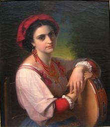 Keywords: Carl Ehrenberg Italienerin mit Tambourin.jpg Italienerin mit Tamburin de Signiert Carl Ehrenberg Roma 1872 oil on canvas size 62 75 cm http //www altekunst-vienna com/ altekunst-vienna com 1872 Creator Carl Ehrenberg PD-old-auto-1923 1914 Carl Ehrenberg 1872 paintings Women facing right and looking at viewer in art Red clothing in art female 19th-century oil on canvas paintings Romantic paintings of Italian women Portrait paintings of women with tambourines 19th-century paintings location missing |