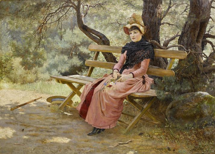 Keywords: Carl Erik Törner - Förlorade i tanken.jpg Fredrik Carl Erik Törner 1862-1911 title Lost in thought Förlorade i tanken In Gedanken versunken 1886 oil canvas cm 147 5 203 5 object history Private collection credit line C E Törner Dalarö 86 signature/place/date lower right on remnants of an old label accession number http //www bonhams com/auctions/16863/lot/24/ Bonhams Other versions PD-Art-100 Fredrik Carl Erik Törner Portrait paintings of women 1886 paintings Images from Bonhams Paintings of women sitting on outdoor benches Daydreams in art |