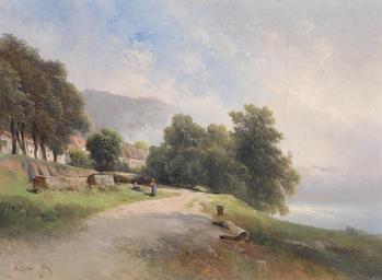 Keywords: Carl Franz Emanuel Haunold Holzgarten Vorstadt in Passau.jpg Holzgarten Vorstadt in Passau verso title Passau H text/monogram lower left oil canvas cardboard 37 x 51 cm http //www dorotheum com Dorotheum by 1911 Carl Franz Emanuel Haunold 1832-1911 PD-old Images from Dorotheum Karl Haunold History of Passau Passau in art Landscape paintings of Bavaria Paintings of country roads |