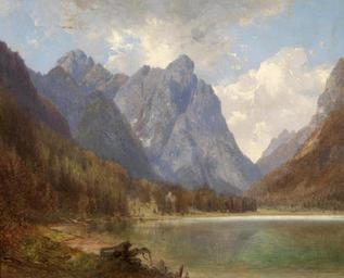 Keywords: Carl Hasch Toblacher See.jpg Der Toblacher See im Pustertal 100_P13 3130 C Hasch signature oil on canvas 37 x 46 cm http //www dorotheum com by 1897 Carl Hasch 1834-1897 PD-old-70 Toblacher See Paintings of the Italian Alps Paintings of Alpine lakes Images from Dorotheum Carl Hasch |