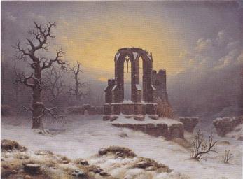 | Keywords: Carl Hasenpflug - Kirchenruine im Schnee -1853.jpeg Artwork Creator Carl Hasenpflug 1853 Oil on canvas Size cm 21 29 Institution Museum für Kunst und Kulturgeschichte object history credit line accession number repro from art book PD-old-100 Carl Hasenpflug Museum für Kunst und Kulturgeschichte |