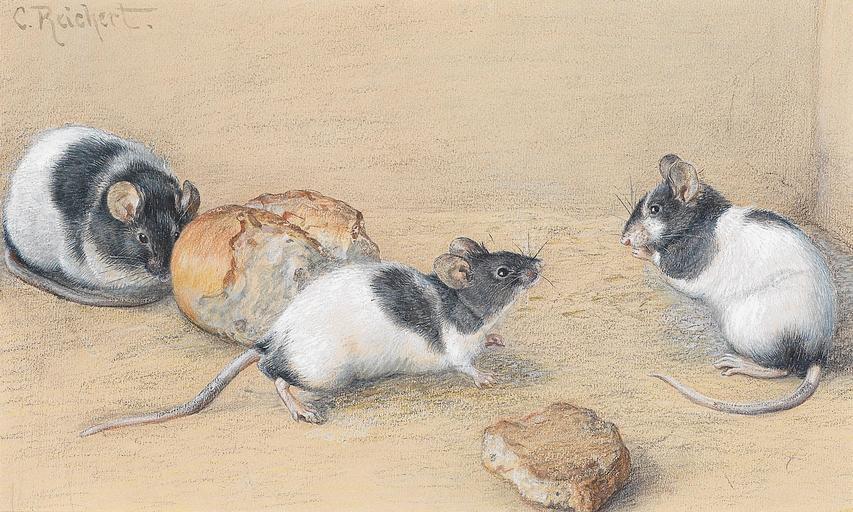 Keywords: Carl Reichert Mäuse.jpg Mäuse C Reichert signature upper left watercolor bodycolor white crayon paper 22 5 x 20 cm http //www dorotheum com Dorotheum by 1918 creator Carl Reichert PD-old-auto-1923 1918 Images from Dorotheum Carl Reichert painter Paintings of mice |