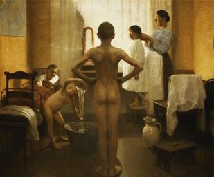 Keywords: Carl Vilhelm Meyer - Lordagrengoring (ca.1908).jpg 1908/1909 oil canvas cm 81 9 98 1 accession number object history sold at Christie's credit line exhibition history http //www bildergipfel at/kunstdrucke/kunststile_und_epochen/19_jahrhundert/waschtag_1908-09_carl_vilhelm_meyer osCsid 1dcf755378e431c787e453d71de300d6 Bildergipfel at PD-old-auto-1923 1938 DEFAULTSORT Meyer Carl Vilhelm Carl Vilhelm Meyer Paintings of nude boys 20th-century genre paintings Images from Christie's