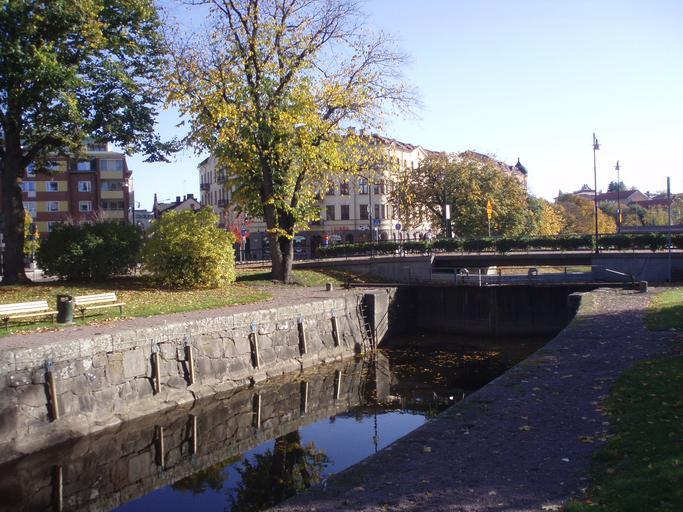 Keywords: Carlarnas sluss.jpg en Carlarnas sluss Lock in Karlstad Own EriFr 2008-10-06 Canal locks in Sweden Pråmkanalen