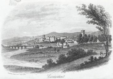 | Keywords: Carmarthen.jpeg Size mm 117 150 exhibition history Institution National Library of Wales Technique print engraving bw object history object type PD-old-70-1923 place of creation place of discovery 1129127 Carmarthen Uploaded with GWToolset Carmarthen http //dams llgc org uk/behaviour/llgc-id 1129127/fedora-bdef image/reference Images uploaded as part of NLW - WMUK collaboration Welsh Landscape Collection Carmarthen River Towy | ||||