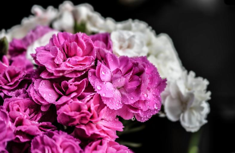 Keywords: carnation flowers purple nature close pink blossom flora plant bloom color season macro droplets