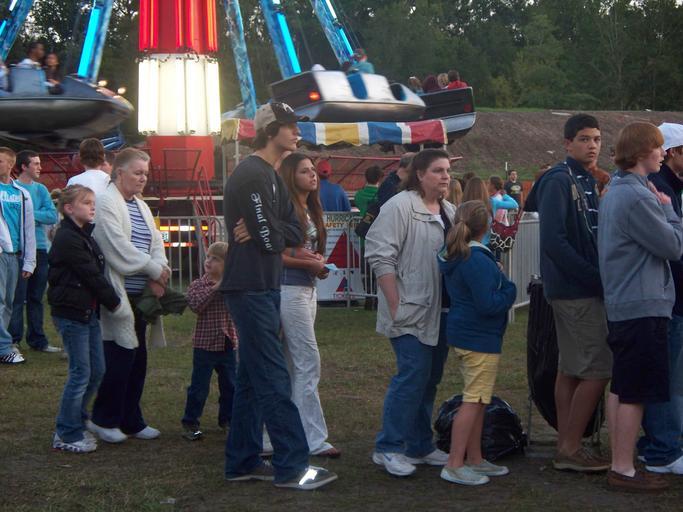 Keywords: CarnivalQueue1.jpg en Groggy patrons cross their arms while queueing for a cheap carnival ride the sound of whirling machinery and screams of joy billowing from their left Own Öljylautta Queues