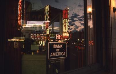 | Keywords: Carol Doda Bank of America 1973.jpg en Broadway and Columbus North Beach San Francisco California 1973 A reflection of Carol Doda's Condor Club in a Bank of America window at sunset 1973 From a Ektachrome 35 mm transparency taken with a Yashica TL Electro SLR camera Scanned with an Epson Perfection V500 Photo own Michael Holley en User Swtpc6800 Photo taken September 1973 scanned November 2008 File Condor Club North Beach1973 jpg File Carol Doda Condor Club 1973 jpg North Beach San Francisco Condor San Francisco Scanned with Epson Perfection V500 Photographs by User Swtpc6800 1973 in San Francisco Photographs taken on Ektachrome and Elite Chrome film |