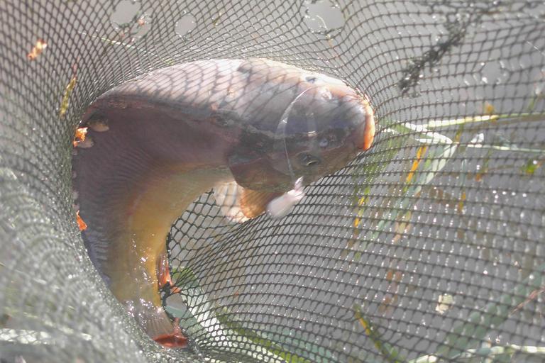 Keywords: Carp in landing net.JPG en Carp in landing net de Karpfen im Kescher own Benreis 2003-08-09 Images by Benreis Cyprinus carpio Taken with DC-4300 Cc-zero
