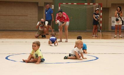 Keywords: roquetas de mar roquetasdemar roquetas de mar deporte roquetasdemardeporte deportes roquetas de mar deportesroquetasdemar deportes verano roquetas deportesveranoroquetas carrera gateos carreragateos sport court game La carrera de gateos para bebés, ‘Todos nacemos deportistas’, ha sido una de las principales novedades de la edición número XXX de Las 100 Horas del Deporte de Roquetas de Mar. Se celebró el 14 de agosto, en el Pabellón Infanta Cristina. Contó con la participación de 14 de bebés. La competición se ha regido por las siguientes normas: en un tapiz se han dibujado dos circunferencias, una pequeña de color azul, y otra más grande alrededor de la anterior de color rojo. Los padres tenían que dejar a sus pequeños en el círculo azul. Al sonar el silbato, que daba inicio a la prueba, los padres tenían que situarse por detrás del círculo rojo para animar a sus hijos a que gateasen hasta cruzar esa línea. Primero se han disputado tres series. El bebé que cruzaba la línea roja en primera posición de cada serie se clasificaba para la final. Tres bebés se han clasificado para la finalísima, que ha estado muy igualada, casi ha sido necesaria la foto finnish. El podio ha quedado encabezado por Luca López, seguido de Serafín Jiménez, segundo, y de Alma González, que ha ocupado el tercer puesto. El resultado era lo de menos. Los tres primeros clasificados han recibido una medalla, seguramente la primera que conquistan en su vida, y a todos los participantes se les ha hecho entrega de un diploma para que quede constancia de su primera incursión en Las 100 Horas del Deporte de Roquetas de Mar. La carrera de gateos para bebés, ‘Todos nacemos deportistas’, ha sido una de las principales novedades de la edición número XXX de Las 100 Horas del Deporte de Roquetas de Mar. Se celebró el 14 de agosto, en el Pabellón Infanta Cristina. Contó con la participación de 14 de bebés. La competición se ha regido por las siguientes normas: en un tapiz se han dibujado dos circunferencias, una pequeña de color azul, y otra más grande alrededor de la anterior de color rojo. Los padres tenían que dejar a sus pequeños en el círculo azul. Al sonar el silbato, que daba inicio a la prueba, los padres tenían que situarse por detrás del círculo rojo para animar a sus hijos a que gateasen hasta cruzar esa línea. Primero se han disputado tres series. El bebé que cruzaba la línea roja en primera posición de cada serie se clasificaba para la final. Tres bebés se han clasificado para la finalísima, que ha estado muy igualada, casi ha sido necesaria la foto finnish. El podio ha quedado encabezado por Luca López, seguido de Serafín Jiménez, segundo, y de Alma González, que ha ocupado el tercer puesto. El resultado era lo de menos. Los tres primeros clasificados han recibido una medalla, seguramente la primera que conquistan en su vida, y a todos los participantes se les ha hecho entrega de un diploma para que quede constancia de su primera incursión en Las 100 Horas del Deporte de Roquetas de Mar. |