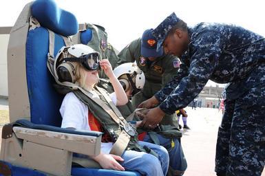 Keywords: Carrier Air Wing 130308-N-OX321-183.jpg en Naval Aircrewman Mechanical 2nd Class Kenneth Miller center and Aviation Machinist's Mate 2nd Class Andre Lewis buckle two children into a pilot's chair during a pre-deployment fun fair at Shirley Lanham Elementary School at Naval Air Facility Atsugi The event gives students and spouses of Carrier Air Wing CVW 5's deployable active duty members a chance to better understand what tasks service members perform while on deployment U S Navy photo by Mass Communication Specialist 3rd Class Kegan E Kay/Released 2013-03-09 Petty Officer 2nd Class Kegan Kay https //www dvidshub net/image/883209 130308-N-OX321-183 2013-03-09 14 15 AYASE JP PD-USGov-Military-Navy Naval Air Facility Atsugi Images from DoD uploaded by Fæ |