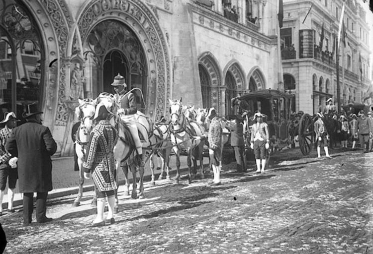 Keywords: Carrosses royaux de Portugal et patron (Rocio).jpg Information_field GEH record <blockquote> Chusseau-Flaviens Ch French active 1890s-1910s TITLE ON OBJECT Carrosses royaux Portugal ca 1900-1919 negative gelatin on glass 9 x 12 cm Gift of Kodak Pathe 75 0111 4295 NON-GEH NUMBER 058 A 38C INSCRIPTION Carrosses royaux Portugal NOTES CATALOGUED 12/88 JBM SUBJECT people procession </blockquote> Institution George Eastman House http //www geh org/ar/chus/portugal/m197501114295_ful html http //www geh org/ar/strip06/m197501114295 jpg 1905-10-27 Charles Chusseau-Flaviens see below Carrosses royaux de Portugal Rocio jpg Information_field 1st uploaded as the 24 629 709<sup>th</sup> file in Wikimedia Commons removed border Medium69 restoration Lic PD-old Black and white photographs of Lisbon Photographs of Portugal by Charles Chusseau-Flaviens Photographs in the George Eastman House Collection Visit by Émile Loubet in Portugal 1905 Carriages in the 1900s Photographs taken on 1905-10-27 Exterior of Rossio train station Carriages in Lisbon |