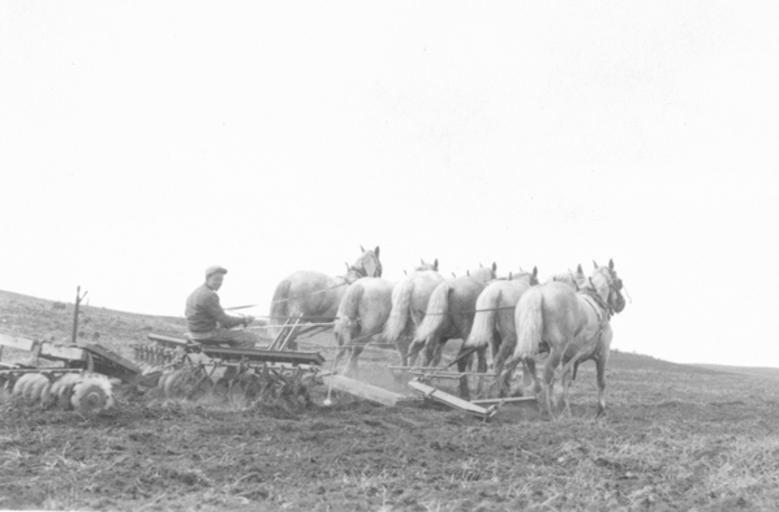 | Keywords: mennonite community agriculture farming animals mennonitecommunityagriculturefarminganimals maxwell simpson maxwellsimpson horses cartairs alberta blackandwhite monochrome outdoor black and white Caption: August 6, 1948. Carstairs, Alberta. Maxwell Simpson working summer fallow with a six horse team. Citation: Mennonite Community Photographs, 1947-1953. Farm Animals. HM4-154. Boxes 2-3 Photo 411.0-20. Mennonite Church USA Archives - Goshen. Goshen, Indiana. Caption: August 6, 1948. Carstairs, Alberta. Maxwell Simpson working summer fallow with a six horse team. Citation: Mennonite Community Photographs, 1947-1953. Farm Animals. HM4-154. Boxes 2-3 Photo 411.0-20. Mennonite Church USA Archives - Goshen. Goshen, Indiana. |