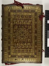 | Keywords: Carta executoria de Hidalguia (begins imperfectly) -Origin Spain, S. (Grenada) -Date 21 May 1597 -manuscript on parchment--Language Spanish -Script Humanistic - - Upper cover (Egerton 3296).jpg Style All over design Religious miscellaneous Bird motif Hunting scene Presentation; Caption Upper cover; Colour Brown; Edge Gilt exhibition history Decorative Technique Tooled in gold; Cover Material Goatskin includes morocco turkey etc Reains of 3 silk ties Issued by Philip II of Spain to Migeul and Pedromarin de Camara of Baeza Signed by three of the Alcaldes of the Audiencia de los Hijos dalgo viz Ruiz Diaz de Mendoça Juan de Rojas Carvajal and Diego Mesia de Frias and attested by the Notary f 61 ; Mesia de Frias also signed Egerton 2394 and Additional 18166 and a letter in favour of Rojas Carvajal is in Additional 28703 f 34 ; followed by a notarial certificate of publication at Baeza 9 June 1597 f 61v-62 object history Text 16c; Spain; Unspecified object type Cc-zero place of creation Binding Spain place of discovery Unspecified British Library image http //www bl uk/catalogues/bookbindings/LargeImage aspx RecordId 020-000016518 ImageId ImageId 55805 Copyright BL Carta executoria de Hidalguia begins imperfectly Origin Spain S Grenada Date 21 May 1597 manuscript on parchment Language Spanish Script Humanistic Uploaded with GWToolset Carta executoria de Hidalguia begins imperfectly Origin Spain S Grenada Date 21 May 1597 manuscript on parchment Language Spanish Script Humanistic - Upper cover Egerton 3296 http //www webarchive org uk/bldatasets/bindings/EG3296 jpg Bookbinding 16th-century bookbinding British Library Bookbindings |