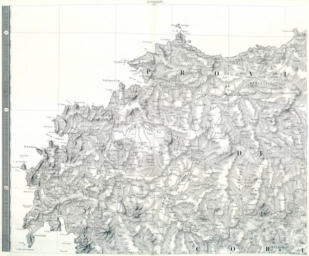 Keywords: Carta geométrica de Galicia Museo Naval 04 Santiago.jpg es <center> CARTA GEOMETRICA<br /> <big>D E G A L I C I A</big><br /> Dividida en sus Provincias<br /> de Coruña Lugo Orense Pontevedra; y subdividida en Partidos y Ayuntamientos <br /> PRESENTADA<br /> <small>EN 1834</small><br /> A S M LA REINA GOBERNADORA<br /> <big>Doña Maria Cristina de Borbon</big><br /> por su Secretario de Estado y del despacho de lo Interior<br /> <small>LEVANTADA Y CONSTRUIDA</small><br /> <small>EN LA ESCALA</small><br /> <small>DEL CIENMILESIMO</small><br /> POR EL D<sup>R</sup> D DOMINGO FONTAN <br /> Director del Observatorio Astronomico de Madrid Diputado á Cortes <br /> Individuo de la Academia de la Historia y de la Sociedad de Geografia de Paris <br /> <small>Ex-profesor de Matematicas sublimes y de Mecanica industrial en la Ciudad de Santiago </small><br /> <big>Grabada bajo la dirección del Autor</big><br /> en 1845<br /> POR L BOUFFARD<br /> <small>No se grabó la división de los Partidos y Ayuntamientos</small><br /> <small>en razon de su interinidad </small><br /> </center> 1845 http //bvpb mcu es/gl/consulta/registro cmd id 434518 Museo Naval Biblioteca Creator Domingo Fontán other versions Custom license marker 2016 12 03 Pd-old-100 Carta geométrica de Galicia 1845 |