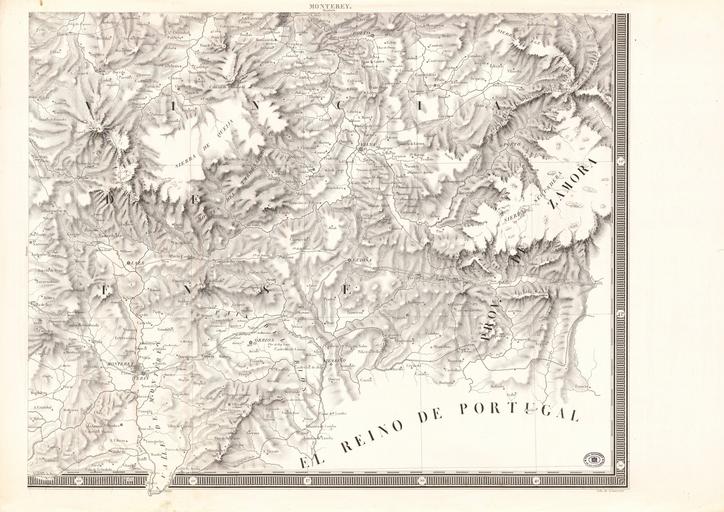 Keywords: Carta geométrica de Galicia 12 Monterey.jpg es <center> CARTA GEOMETRICA<br /> <big>D E G A L I C I A</big><br /> Dividida en sus Provincias<br /> de Coruña Lugo Orense Pontevedra; y subdividida en Partidos y Ayuntamientos <br /> PRESENTADA<br /> <small>EN 1834</small><br /> A S M LA REINA GOBERNADORA<br /> <big>Doña Maria Cristina de Borbon</big><br /> por su Secretario de Estado y del despacho de lo Interior<br /> <small>LEVANTADA Y CONSTRUIDA</small><br /> <small>EN LA ESCALA</small><br /> <small>DEL CIENMILESIMO</small><br /> POR EL D<sup>R</sup> D DOMINGO FONTAN <br /> Director del Observatorio Astronomico de Madrid Diputado á Cortes <br /> Individuo de la Academia de la Historia y de la Sociedad de Geografia de Paris <br /> <small>Ex-profesor de Matematicas sublimes y de Mecanica industrial en la Ciudad de Santiago </small><br /> <big>Grabada bajo la dirección del Autor</big><br /> en 1845<br /> POR L BOUFFARD<br /> <small>No se grabó la división de los Partidos y Ayuntamientos</small><br /> <small>en razon de su interinidad </small><br /> </center> 1845 http //bibliotecadigital rah es/dgbrah/es/consulta/registro cmd id 15909 Real Academia de la Historia Domingo Fontán 1788-1866 other versions PD-old-70-1923 Carta geométrica de Galicia 1845 |