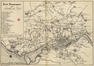 Keywords: Carta topografica das Linhas do Porto.jpg en Topographic map of Linhas do Porto Siege of Porto Liberal Wars pt Carta topografica das Linhas do Porto durante o Cerco do Porto Guerra Civil Portuguesa Guerras Liberais <br/>ESCALA Escala ca 1 25400 Palmo por légua de 2540 Braças portuguesas 8 6 cm <br/>PUBLICAÇÃO Lisboa Lith de A C Lemos 1835 <br/>DESCR FÍSICA 1 mapa litografia p b ; 29 50x42 80 cm em folha de 39 00x48 40 cm <br/>NOTAS Contém ainda escala gráfica de 1000 braças e encontra-se orientada a Nor-Nordeste Actualização de original anteriormente elaborado ver mapa com a cota PTBNP C C 810 V segundo dados aí inclusos em ca de 1834 Data provável atribuída segundo os antecedentes editoriais e o período de actividade de A C Lemos cf Ernesto Soares - Dicionário de iconografia v 3 índice de artistas O mapa apresenta linhas ponteadas identificando as posições militares assim como a localização de baterias e fortes e a indicação de datas de confrontos militares Biblioteca Nacional de Portugal http //purl pt/1388 1835 Lemos A C fl ca 1833-1843; Moreira Francisco Pedro de Arbués 1777-1843 ant bibliog Institution Institution Biblioteca Nacional de Portugal Accession number Cota C C 117 V PD-old-100 1843 Cartography in the BNP Portuguese Civil War Old maps of Porto 1835 maps Files uploaded by User JotaCartas Porto in the 19th century |