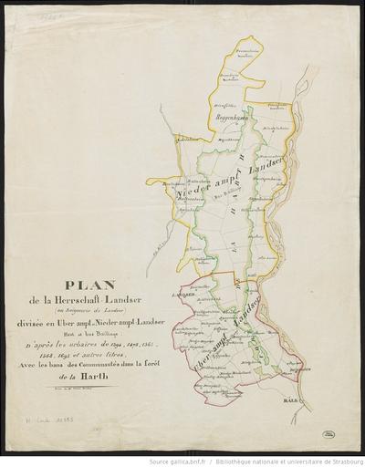 Keywords: Carte de la seigneurie de Landser.jpg fr Plan de la Herrschaft-Landser ou seigneurie de Landser divisée en Uberampt et Niederampt-Landser haut et bas bailliage D'après les urbaires et autres titres de 1394 1478 1565 1568 1695 et autres titres Avec les bans des Communautés dans la forêt de la Harth http //gallica bnf fr/ark /12148/btv1b102235211 Bibliothèque nationale et universitaire de Strasbourg MCARTE10395 Decker Veuve Colmar PD-old-auto Michelbach-le-Haut |