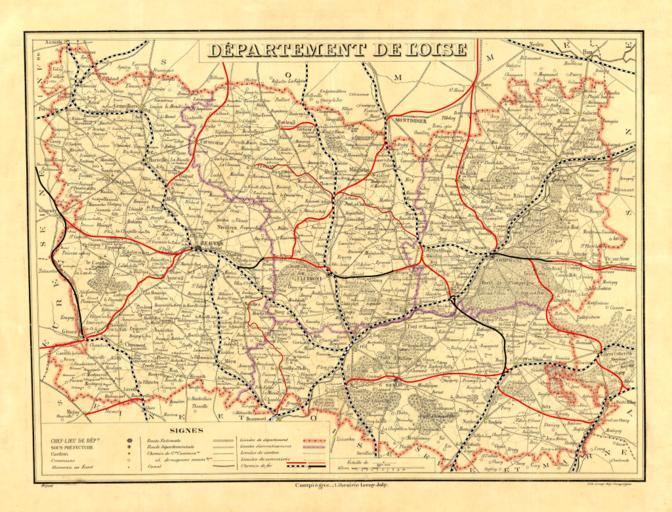 | Keywords: Carte ferroviaire de l'Oise en 1891.svg fr Carte ferroviaire de l'Oise en 1891 contenant également les lignes à voie normale en construction Les lignes exploitées en service voyageurs en 2013 sont marquées en noir et blanc ; les lignes exploitées en trafic fret en noir Les lignes inexploitées ou supprimées sont marquées en rouge le trait rouge fin correspond à des lignes à voie métrique ; seulement les lignes en service en 1891 sont marquées Carte éditée par la librairie Leroy-Joly à Compiègne Oise author 1891 Old maps of Oise Cc-zero |