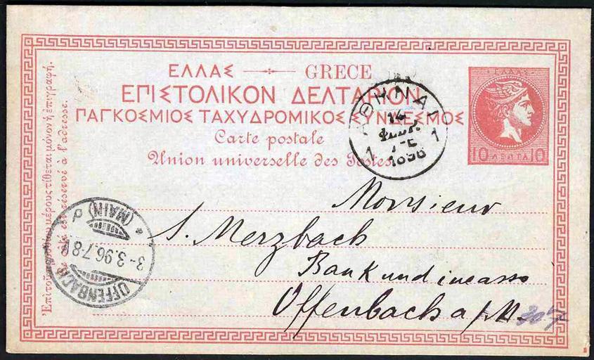 | Keywords: Carte-postale.jpg Postcard from Athens to Offenbach/Germany Καρτ οστάλ α ό την Αθήνα στο Όφενμ αχ της Γερμανίας Transferred from http //el wikipedia org el wikipedia; transferred to Commons by User MARKELLOS using http //tools wikimedia de/~magnus/commonshelper php CommonsHelper 1883 design c 1895 print Unknown The Hermes head design originally in 1861 by André Désiré Barre 1818-1878 This image is in the public domain PD-Art Original upload log page el wikipedia Carte-postale jpg 2007-03-05 10 07 Christos Vittoratos 1178714 740505 bytes <nowiki>Copyright free Postcard from Athens to Offenbach/Germany </nowiki> Postal stationery of Greece Postcards of Greece Large Hermes head stamps |