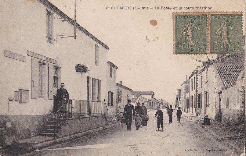Keywords: Carte postale ancienne de Chéméré 40.jpg fr Carte postale ancienne représentant la commune de Chéméré par François Chapeau inscription 8 CHÉMÉRÉ L -Inf “ La Poste et la route d ™Arthon caption recto top right fr collotype inscription Collection F Chapeau Nantes publisher's seal recto bottom right fr collotype 2015-09-26 14 52 58 Carte postale ancienne de Chéméré François Chapeau other versions Custom license marker 2015 09 26 PD-Art PD-old-auto 1939 Uploaded with UploadWizard Postcards of Chéméré Opération Libre à Chéméré Scanned with Canon Pixma MX925 Streets in Chéméré Buildings in Chéméré Post offices in Loire-Atlantique François Chapeau |