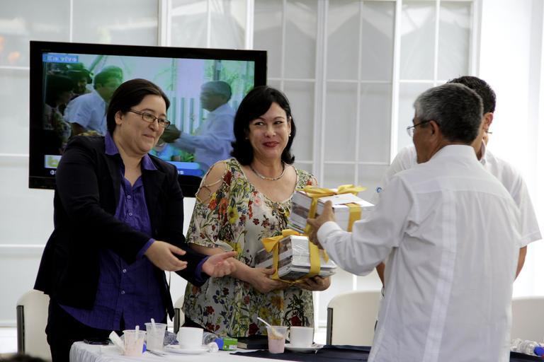Keywords: people indoor Directoras de TV 10 y Radio UPA , reciben libros del Secretario de Cultura, Ramòn Rivas Directoras de TV 10 y Radio UPA , reciben libros del Secretario de Cultura, Ramòn Rivas