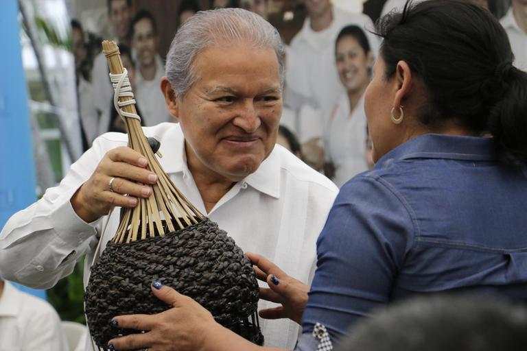 Keywords: people Presidente Salvador Sánchez Ceren recibe un obsequio de una miembro de Comite de Desarrollo Turístico. Presidente Salvador Sánchez Ceren recibe un obsequio de una miembro de Comite de Desarrollo Turístico.