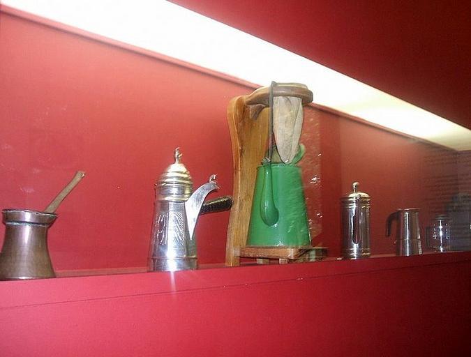 Keywords: Casa do Bandeirante, vitrine 1.JPG pt Vitrine com aparatos para preparar e servir café no interior da Casa do Bandeirante em São Paulo Brasil own Dornicke 2009-04-07 Coffeemaking implements Coffee in Brazil Casa do Bandeirante